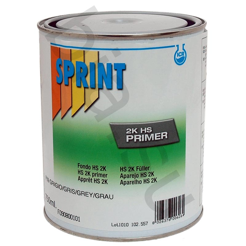 Полиуретановый двухкомпонентный грунт Sprint F09. Используется на любых типах поверхностей, в том числе и на старых красках. Имеет отличные заполняющие свойства и низкую текучесть при нанесении на вертикальную поверхность. Быстро сохнет, в том числе во влажной среде. Хорошо шлифуется. Может давать конечный вид апельсиновой корки при нанесении толстыми слоями вплоть до 200-300 мкм.