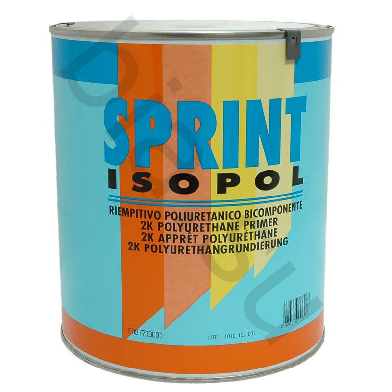 Полиуретановый двухкомпонентный грунт Sprint F09. Используется на любых типах поверхностей, в том числе и на старых красках. Имеет отличные заполняющие свойства и низкую текучесть при нанесении на вертикальную поверхность. Быстро сохнет, в том числе во влажной среде. Хорошо шлифуется. Может давать конечный вид апельсиновой корки при нанесении толстыми слоями вплоть до 200-300 мкм.