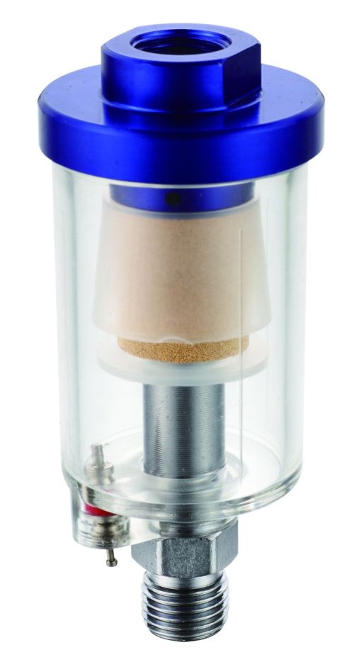 Мини фильтр входной Voylet MF80 устанавливающийся на входе в краскопульт для устранения конденсата, на фильтре установлен клапан ручного слива конденсата.