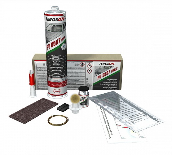Комплект Teroson 8597 HMLC для вклейки одного стекла. Время готовности 1/2 часа. Данный набор для вклейки стекол практичен при необходимости срочной работы по замене автостекла.