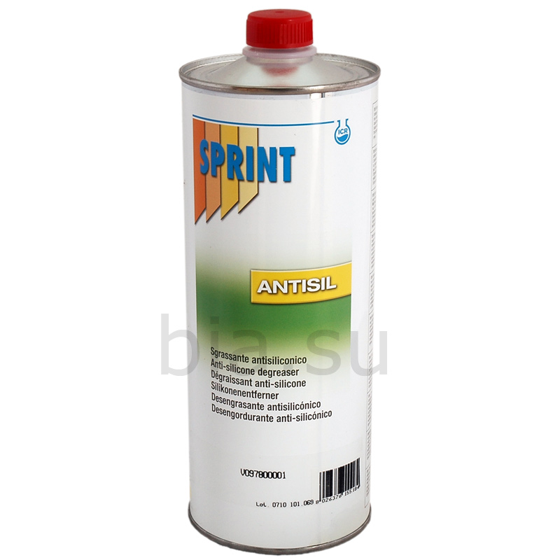 V09 Антисиликон.Антисиликоновая очищающая жидкость Sprint V09. Средство предназначено для очистки поверхности перед окраской, в частности перед нанесением шпатлевок, грунтов, базовых и финишных покрытий. При помощи средства удаляются визуально невидимые слои масел, жиров, силикона, что способствует улучшению адгезии и исключает возможность появления «дымки», кратеров и других дефектов на окрашиваемой поверхности. Благодаря равномерному испарению может использоваться в любое время года.